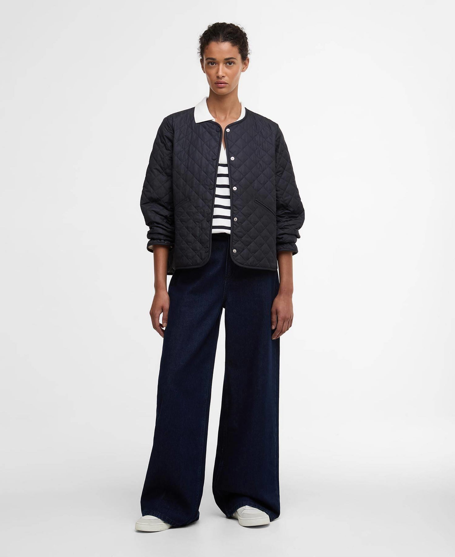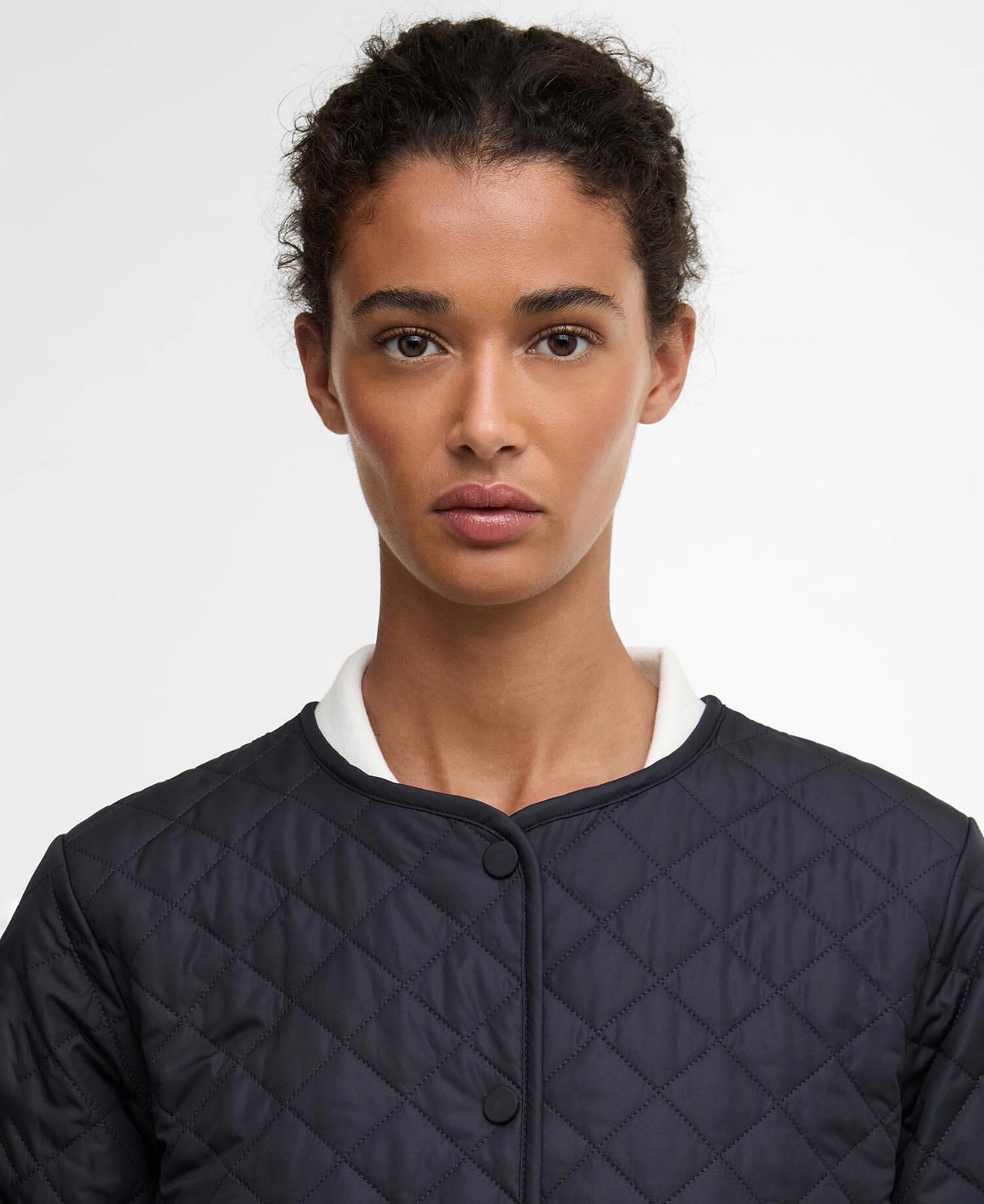 Barbour Cashel Collarless Quilted Jacket er en lett og allsidig jakke, perfekt for overgangssesonger. Den er laget med et kort, firkantet quiltmønster lagt over sesongens tartan, som gir varme uten ekstra volum. Jakken har trykknapper med samme stofftrekk foran, doble stikklommer og kantbånd i samme materiale ved mansjetter og nederkant. Denne jakken kombinerer praktisk funksjonalitet med Barbours tidløse stil og gir et moderne plagg med et arv-inspirert uttrykk – ideelt for enkel og stilfull hverdagsbruk.