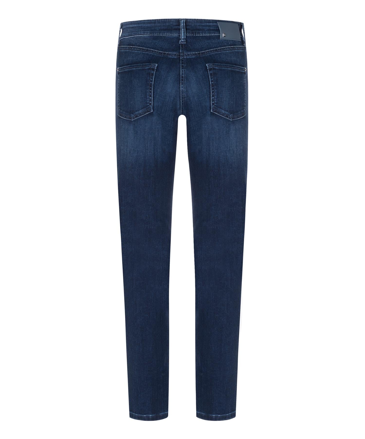 En jeans med rett ben og normal midje som holder formen gjennom dagen. Cambio Piper Long er laget av 40% viskose, 26% bomull, 16% modal, 16% polyester og 2% elastan. Materialmiksen gir en god stretch som følger kroppen uten å bli slapp. Stoffet er behagelig mot huden og tåler vask etter vask. Den mørkeblå fargen er medium stonewashed og blir bare penere med tiden. Glidelås og knapp i front, lommer både foran og bak, og beltestropper i linningen. En klassisk jeans som dekker det meste.