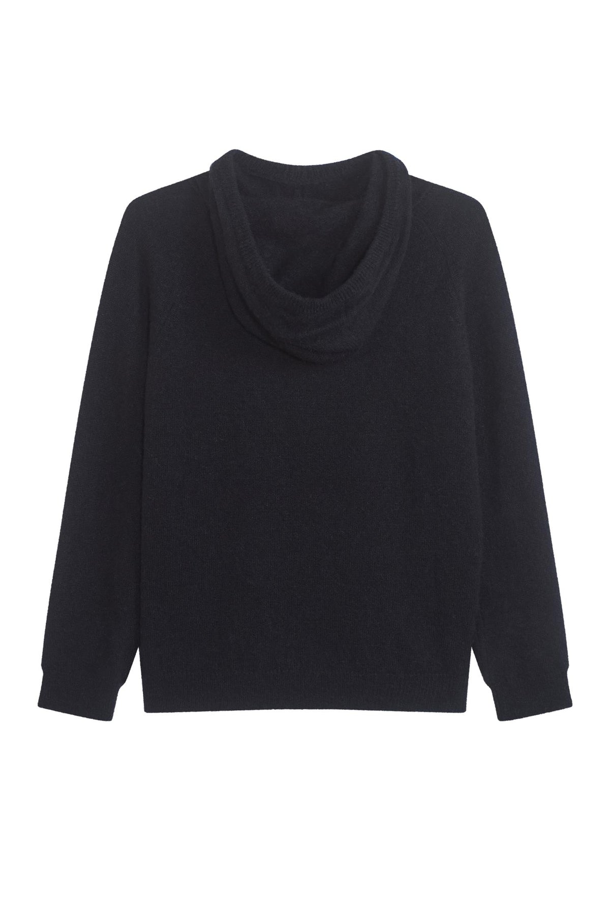 Fargen er sort og går til det meste. Raglanermene gir god bevegelsesfrihet i skuldrene, og lengden er perfekt til både jeans og bukser. Stoffblandingen med alpakka holder varmen uten å bli for varm innendørs. Den er myk mot huden og klør ikke. Ribbekantene ved ermene og i bunnen sitter tett nok til å holde kulda ute, men ikke så stramt at det blir ubehagelig. Hettegenseren har en avslappet stil som ligger godt an i garderoben.