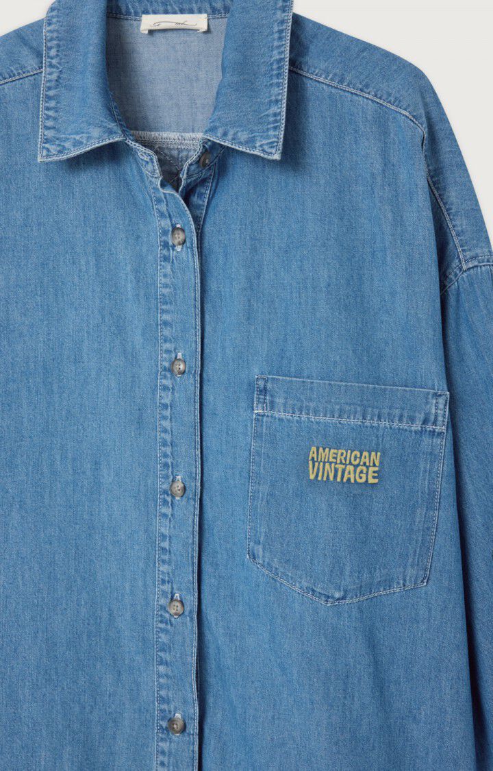 Izeway dameskjorte med løs passform skiller seg ut med sitt myke blå denimstoff og en ecrufarget logo brodert på brystlommen. Det tidløse designet og den romslige passformen gir både komfort og et autentisk uttrykk. Allsidig plagg som kan brukes lukket alene eller åpen over en T-skjorte for en avslappet og moderne stil.