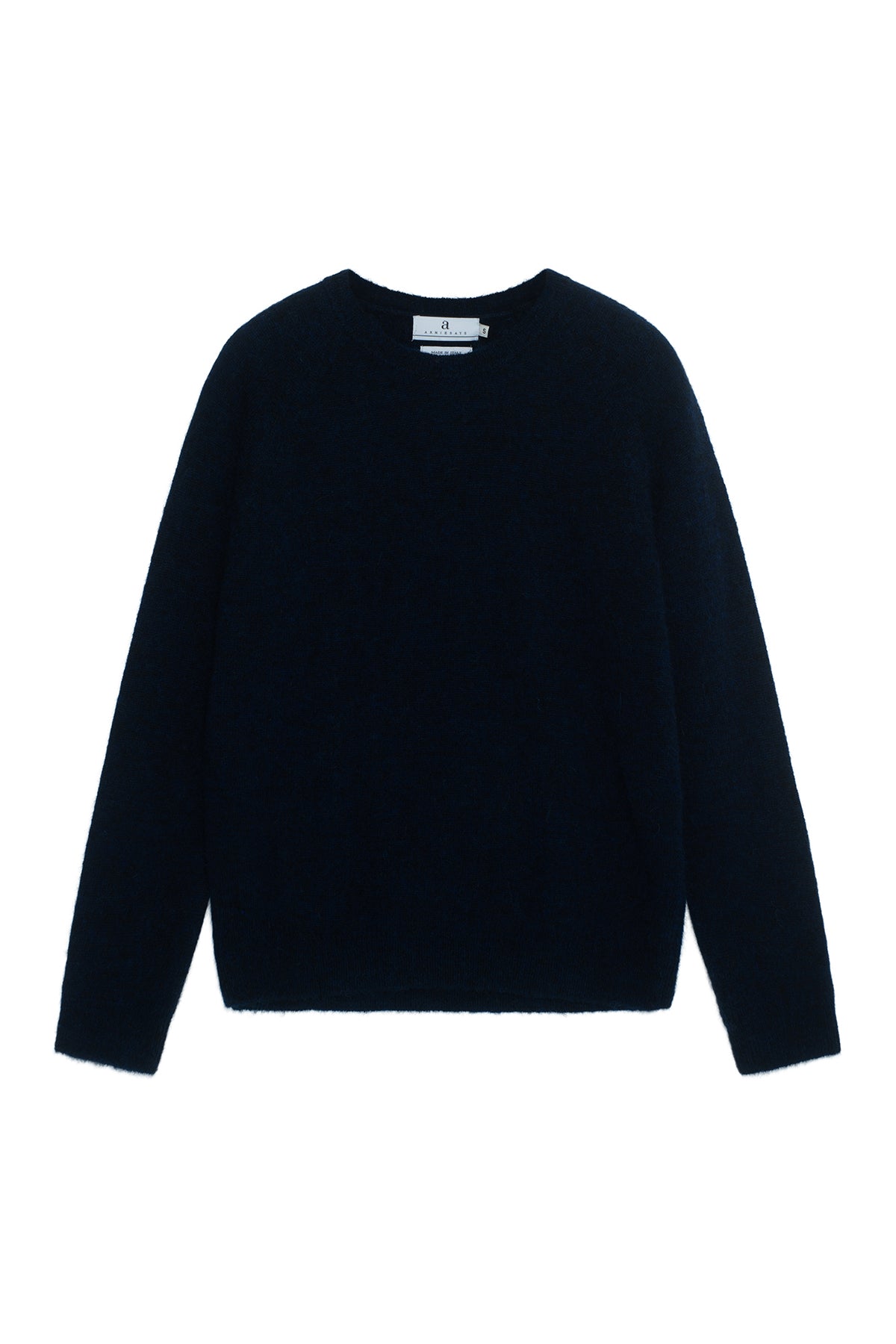 En genser med normal passform som sitter pent på hoften - det er Fiona fra Arnie Says. Strikket i 50% alpakka, 28% polyamid og 22% baby ull, som gjør den myk mot huden og behagelig å ha på. Den mørkblå fargen er lett å kombinere med det meste. Fin rund hals og lange armer som holder deg varm når det blir kaldt ute. Alpakkamiksen holder varmen godt og er lettere enn vanlig ull. Du kommer til å bruke denne mye gjennom høsten og vinteren.