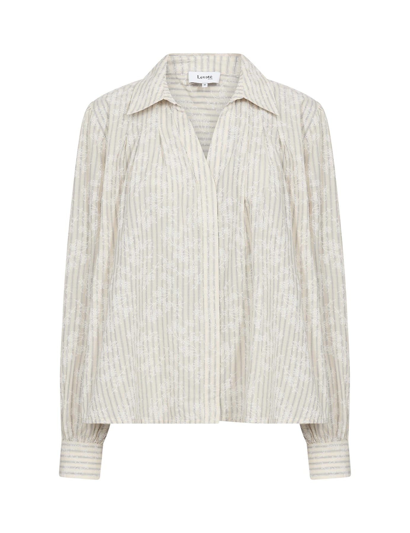 En skjorte med romslig passform og klassisk spisskrage - Percy 1, Turtledove fra Levetè Room er laget av 100% bomull som puster godt. Det fine stripemønsteret i beige gir den et mer spennende uttrykk enn en vanlig hvit skjorte. Mansjetter med knapper og en avslappet passform gjør at den sitter behagelig gjennom hele dagen. Du kan ha den på deg i timevis uten at den føles stiv eller stram.