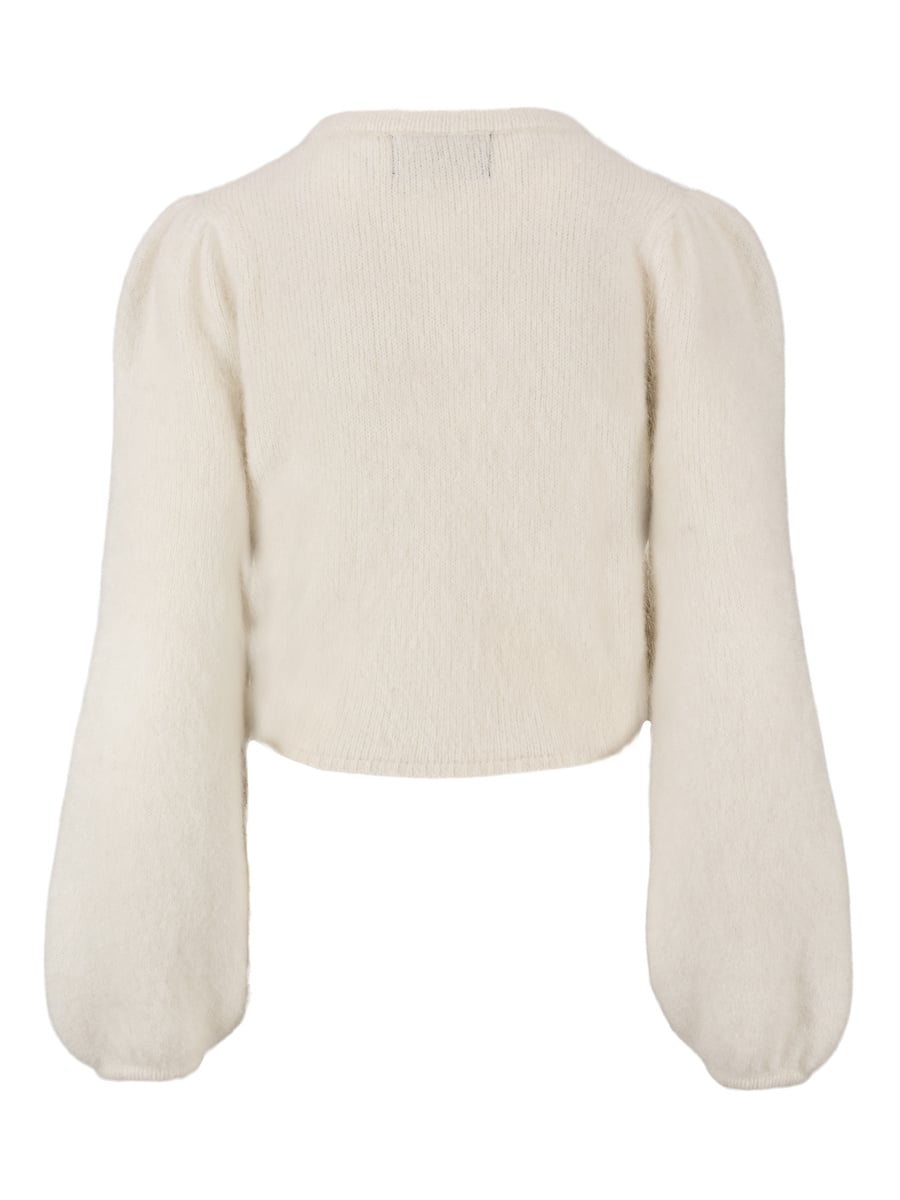 Funksjoner: tykk, luftig chunky-strikk i hele plagget, ballongermer med dramatisk volum, ribbet finish ved hals, mansjetter og kant